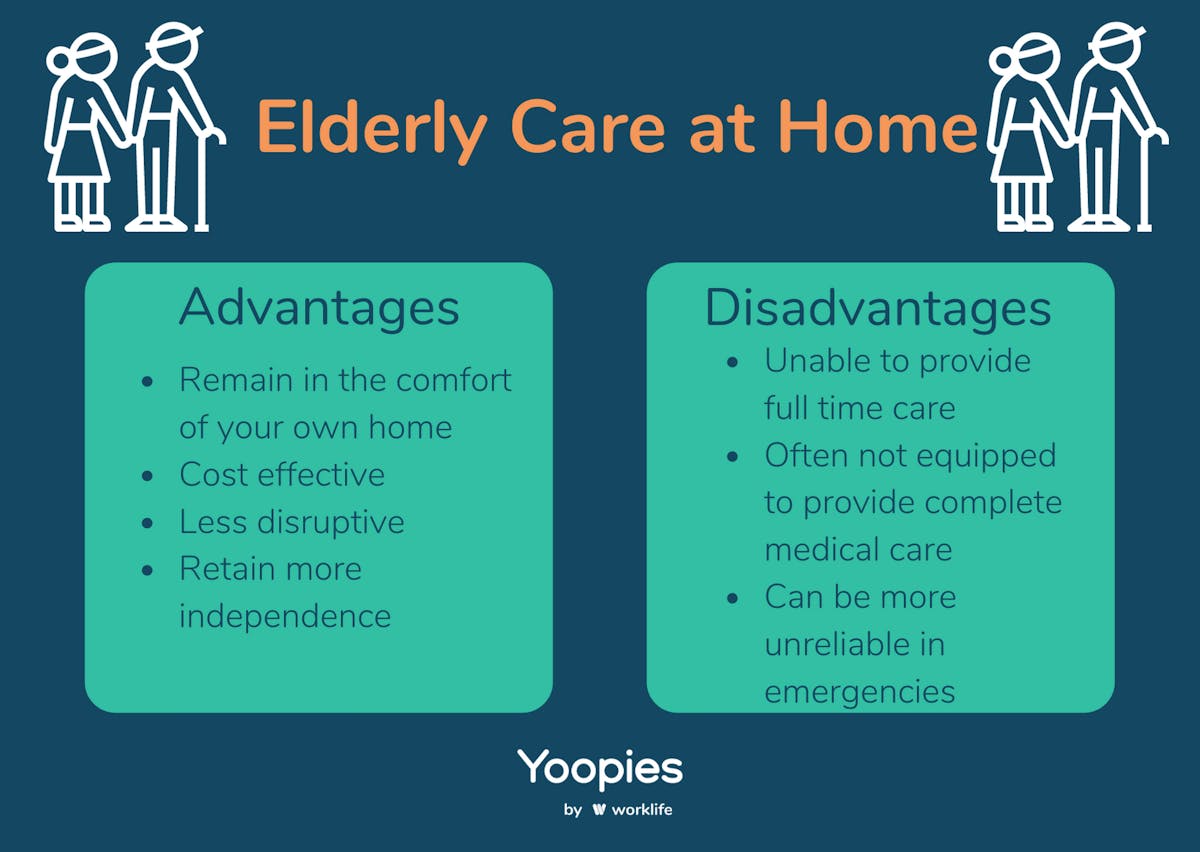 At Yoopies we’re committed to providing care and helping as many people as possible in their home lives, but we recognise that certain solutions may work better for some than others. That’s why we’ve researched all the advantages and disadvantages of our elderly care services, alongside formal care and nursing homes to help our users decide which type of care will suit them best.